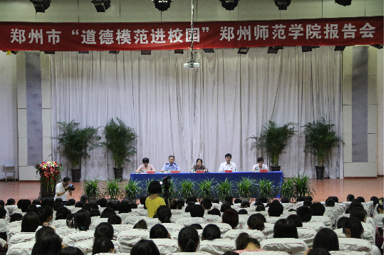 619下午,由市委宣传部、市文明办共同开展的“道德模范进校园”巡讲活动报告会走进郑州师范学院。市文明办副主任薛土岭、未成年人道德教育处处长朱继军等领导参加报告会,报告会由我校党委副书记、工会主席弓民主持。