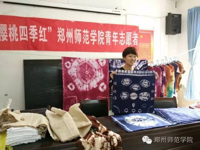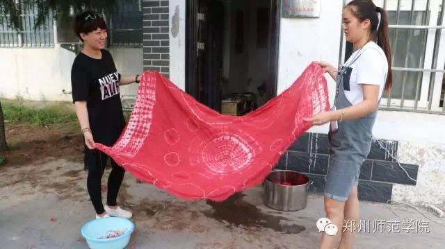 为响应国家的美丽乡村建设,新农村建设和文明单位结对帮扶等号召,6月27日上午,我校美术学院学生在校文明办王雪老师的带领下赴二七区樱桃沟进行社会实践活动,结对帮扶民俗手工艺——扎染。