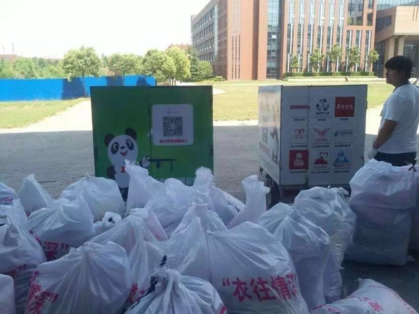 为了关注社会公益,传递社会正能量。历史文化学院青年志愿者协会于2016年5月2日举办了长达一个月的“爱心捐衣”活动,,并在宿舍一号楼旁边摆放了一个大型熊猫用来收纳衣物。