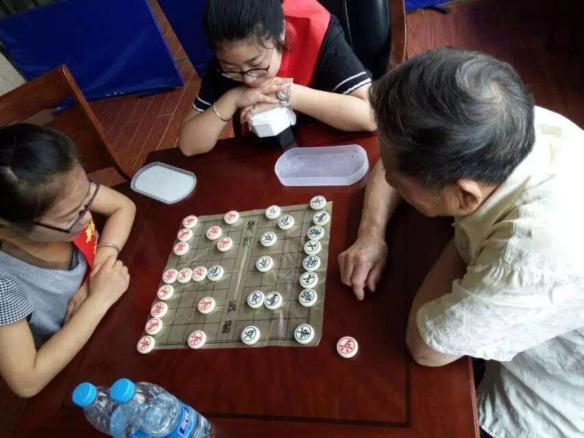 活动期间,2名志愿者负责引导,其他8名志愿者着手准备服务项目直到社区居民参与到活动中。开始后,志愿者耐心地询问了小朋友们的兴趣爱好,并带领他们与围棋志愿者进行对决,志愿者细心的跟他们普及棋盘知识,并教了他们一些基础的取胜技巧。期间,有一名阿姨向志愿者询问了象棋知识,志愿者十分详尽的讲解了全部的相关知识,得到了阿姨的赞赏与肯定。还有一位老爷爷棋艺精湛,与志愿者对杀的时候,讲了许多取胜之道,让志愿者受益匪浅。现场活动进行的如火如荼,气氛热烈,受到了大家的一致好评。