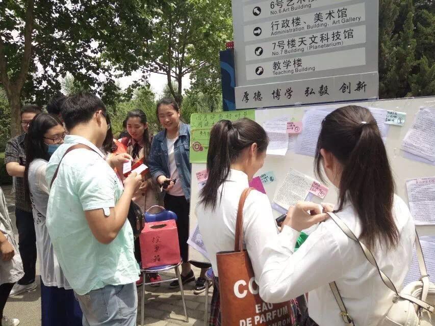志愿者们将四月读本好书活动中收集的一些同学们的读书感悟张贴在展板上,以供同学们前来参观读书成果。展板上有同学写对整本书的读后感,有摘抄的好文、写的心得体会,还有被同学做成PPT打印出来的读书成果,在展板上确实夺人眼球。随着运动会闭幕式结束,一大波同学从操场涌出,看到展板,都纷纷过来询问,志愿者积极的向同学们介绍这次四月读书月的活动。同学们翻看展板上的读书成果,并积极地参与到现场投票中,活动在热烈讨论的氛围中,落下了帷幕。5月16日至5月18日,读书成果将会在信科院团学之家官方微信上进行展示,同学们可以在官方微信上查看读书成果并为喜欢的读书成果投票。