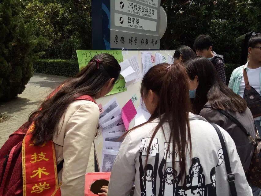 4月23日是世界读书日。四月也是最适宜读书的季节。为了培养学生的阅读兴趣,营造文明优雅的学习氛围,塑造浓郁书香的学习型校园,2016年5月13日,信息科学与技术学院青年志愿者协会在西校区天鹅湖附近开展了“读书成果展示”活动。