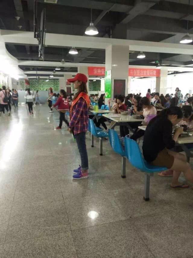 为倡导广大学生养成健康文明的就餐习惯,共创一个文明、优雅、整洁、卫生的就餐环境。文学院于2016年4月25日至2016年4月29日在郑州师范学院东校区餐厅进行了值岗活动,文学院15级各班级的志愿者积极参加到此次维护餐厅秩序的活动中。
