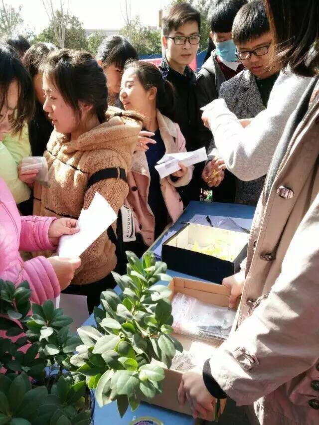 在志愿者的努力宣传下,同学们都积极的前来参加活动。志愿者准时到达活动地点,听负责人安排各项事物后,活动正式开始。活动期间,志愿者们有序的为前来的同学们分发种子,并贴心的将种植的注意事项告诉同学们。现场气氛火爆,准备的种子在预期之前就发放完毕。