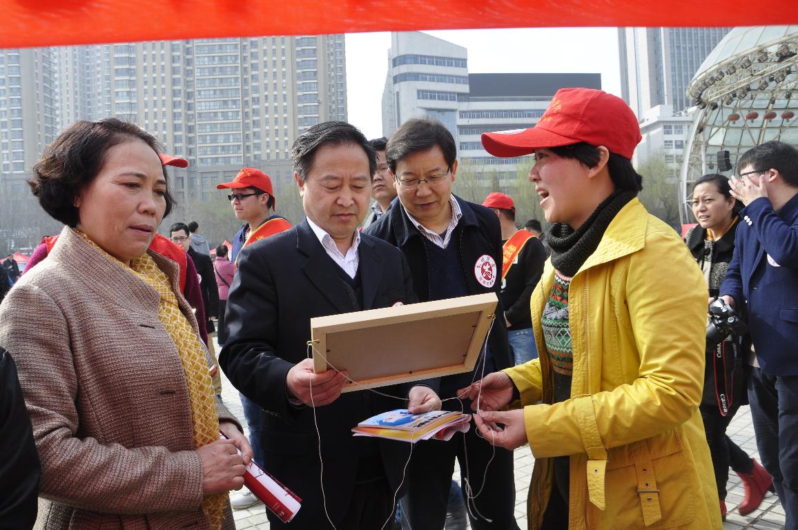 为纪念3月5日“向雷锋同志学习”53周年,由中共郑州市委宣传部、郑州市文明办、郑州市志愿者联合会共同举办的“大爱之城·志愿郑州--郑州市2016年学雷锋志愿服务主题实践活动启动仪式”在3月4日上午9点绿城广场成功举行。古稀高龄卖唱救孤、十六年含辛茹苦当爷娘的“感动中国人物”王宽向全市志愿者发出共建“大爱之城”、共铸“志愿郑州”的倡议。现场千名志愿者齐唱具有郑州元素的《学习雷锋好榜样》,30个优秀志愿服务项目进行了志愿者招募、服务需求对接和现场活动展示。河南省文明办副主任李文良、河南省文明办志愿服务处副处长李丽,郑州市委常委、宣传部长王哲,郑州市政协副主席吴晓君,郑州市志愿者联合会会长武国瑞,郑州市委宣传部副部长、文明办主任裴保顺、市文明办副主任姬月莲等领导出席了仪式。来自郑州市27个专业志愿服务支队、8个区域志愿服务支队和30个优秀志愿服务项目实施机构和团队的1000余名志愿者参加了活动。