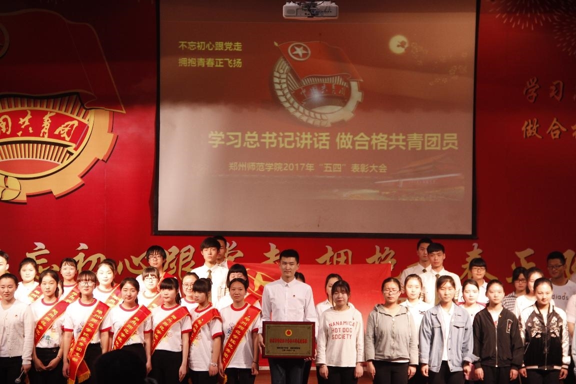 2017年4月25日,郑州师范学院“五四”表彰大会在西校区七号楼学术报告厅举行。出席此次会议的嘉宾有郑州师范学院党委书记赵健、党委副书记工会主席弓民、党委宣传部部长惠保德、学生处副处长王宏及各院总支书记、团员学生代表、获奖代表等。