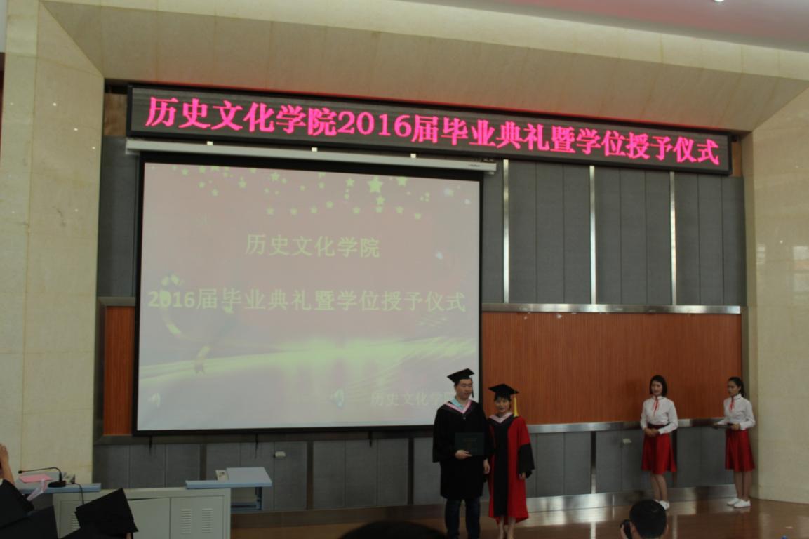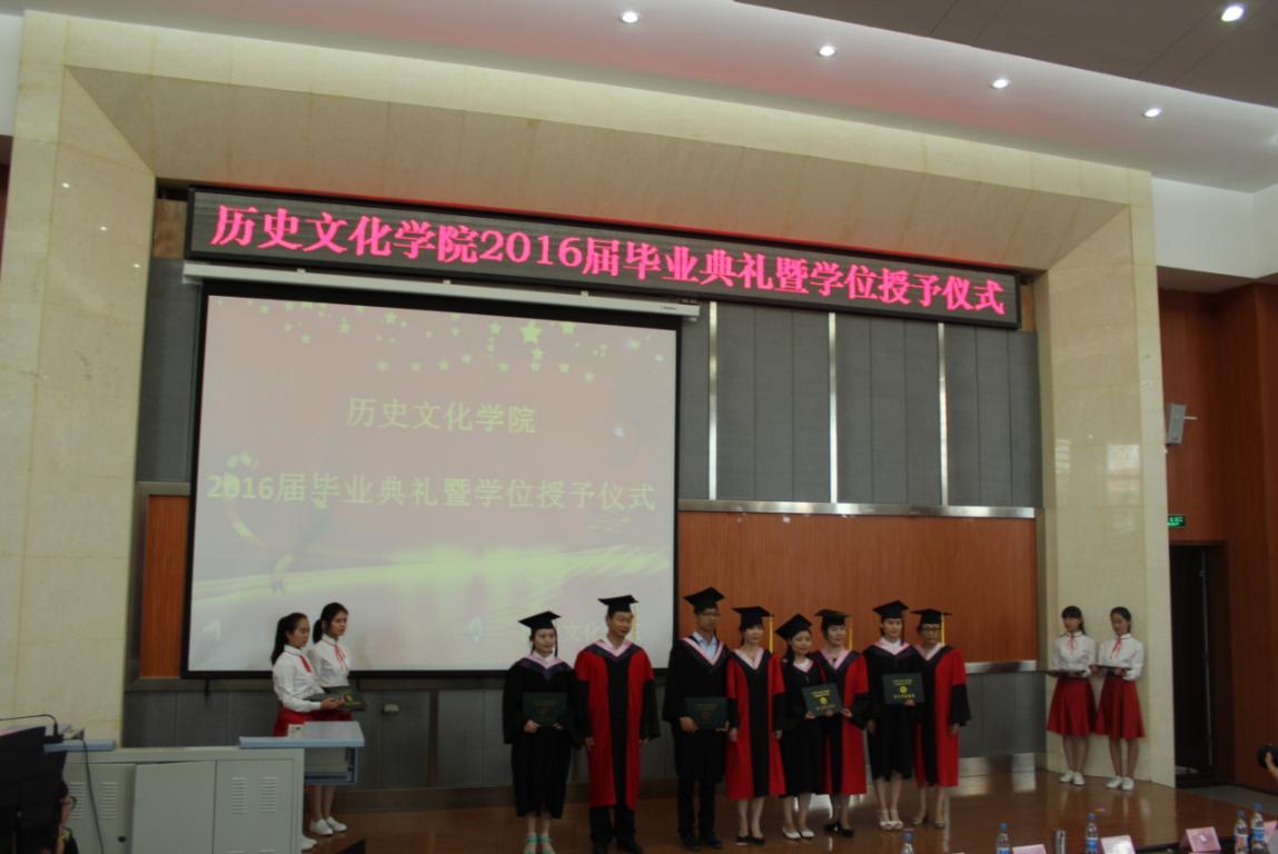 在翟书记发言结束后,由历史文化学院各领导向16年毕业生颁发毕业证书和学位证书,并合影留念。