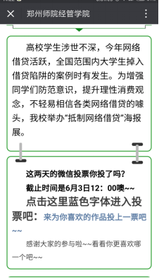 随着网络借贷的快速发展,一些P2P网络借贷平台不断向高校拓展业务,部分不良网络借贷平台采取虚假宣传的方式和降低贷款门槛、隐瞒实际资费标准等手段,诱导学生过度消费,甚至陷入“高利贷”的陷阱,侵犯学生合法权益,造成不良影响。高校学生涉世不深,全国范围内大学生掉入借贷陷阱的案例时有发生。为增强同学们防范意识,提升理性消费观念,不轻易相信各类网络借贷的噱头,我校举办“抵制网络借贷”海报展。为此,我院开展了“抵制网络借贷”的海报评比活动。
