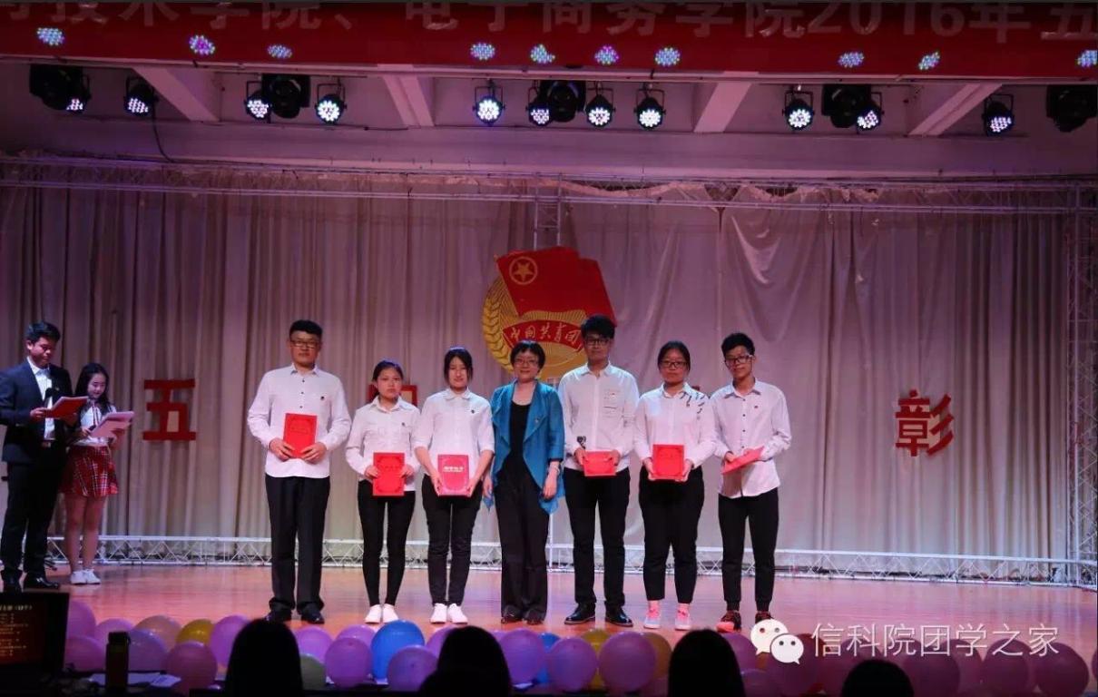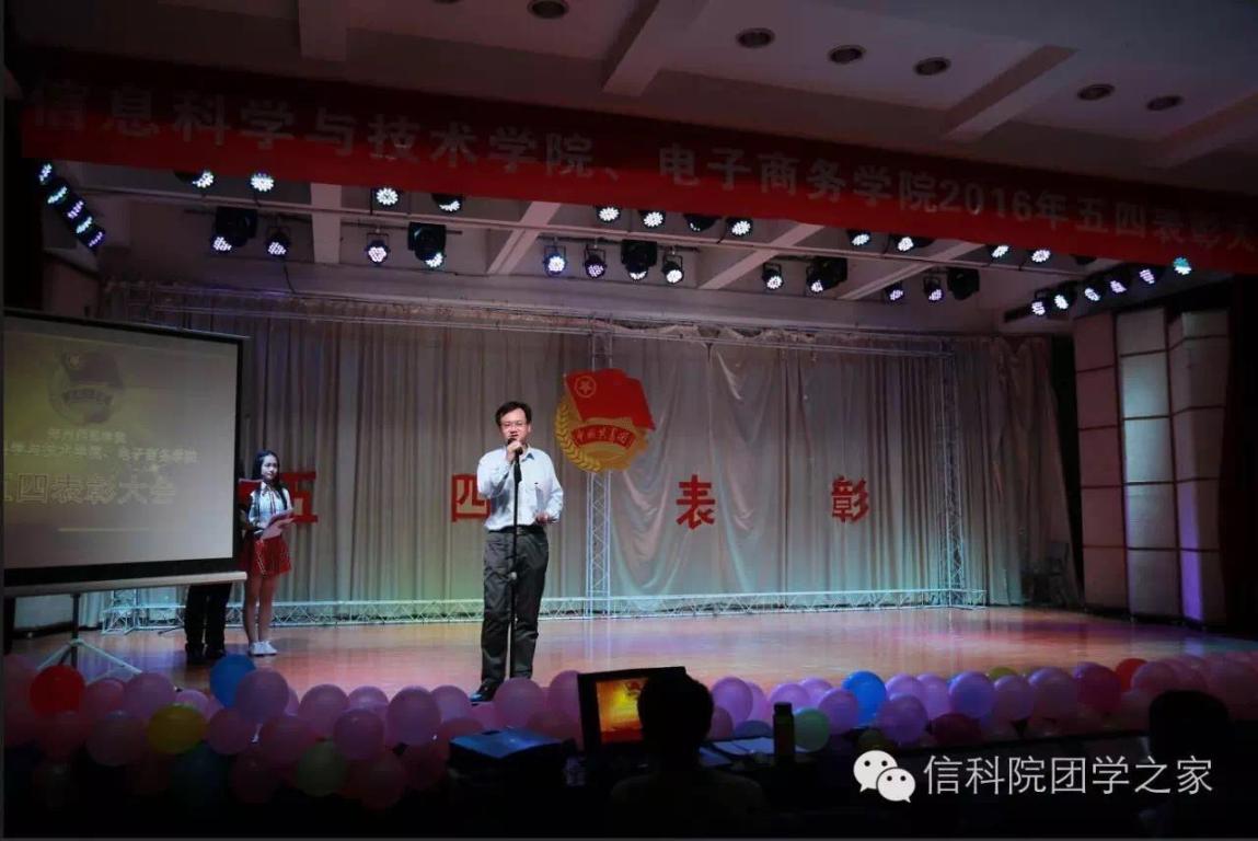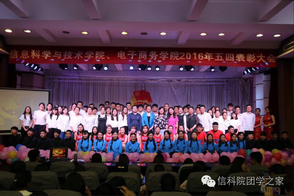 2016年5月20日下午18:00,信息科学与技术学院、电子商务学院2016年五四表彰大会在西校区六号报告厅成功举行。莅临此次会议的领导有总支副书记古明惠、院长胡明生、副院长李正超、团总支书记余奇明、辅导员老师金凯、黄晚星、刘笑寒、汤玮、郭荣光、闵照刚等。