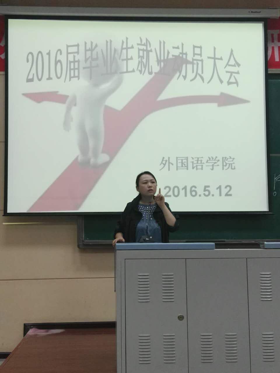 为指导和促进毕业生就业,提高毕业生择业及就业能力,郑州师范学院外国语学院于2016年5月12日上午9点,在综合楼A101召开2016届毕业生就业动员大会。