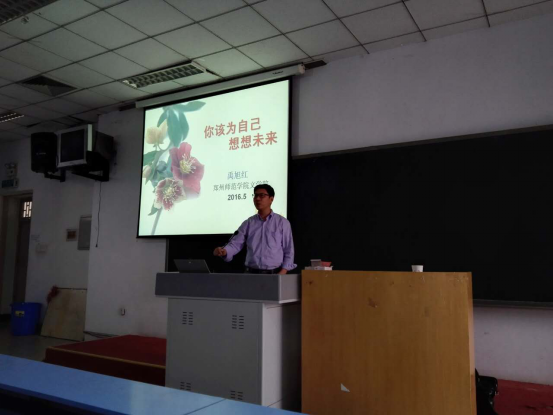 5月9日下午,我院特邀文学院禹旭红教授为2014级专科班学生作题为“你该为自己想想未来”的学术报告。该报告会由杨玉珍院长主持。