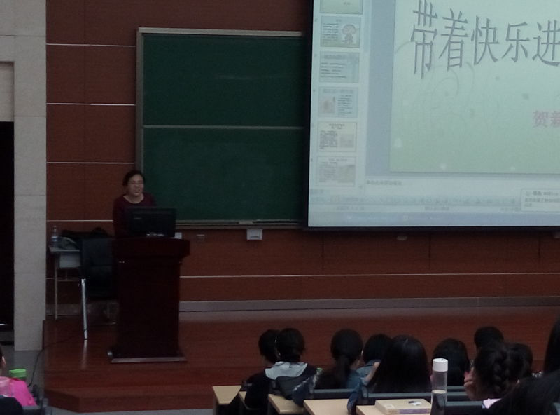 本次讲座的主讲人为郑州市七十三中学九年级物理组组长贺新老师。贺新老师是郑州市市级骨干教师,教学经验丰富,曾荣获河南省第一届青年教师讲赛课二等奖,以及郑州市优质课讲赛课一等奖。出席此次讲座的还有物理与电子工程学院副院长周笑薇和李桢老师,以及13、14级的全体本科生。