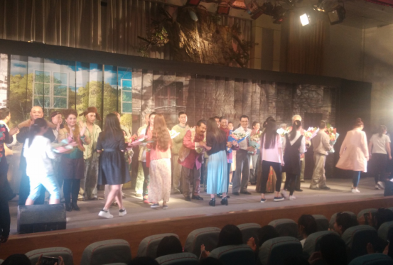下午7时,《西京故事》在一声苍凉的唱段中拉开序幕,生命科学学院的学生们立刻被这种独特的唱腔所吸引。期间,同学们被演员们深情演绎所折服,被故事中催人泪下的情节所感动。演员们激情饱满,故事情节跌宕起伏,同学们沉浸其中,席间高潮不断掌声雷动。最后,故事在一声苍凉却意味深长的秦腔声中画上完美的句号。全场观众肃然起立,掌声经久不息,学生代表手捧鲜花登台向演员们致敬。