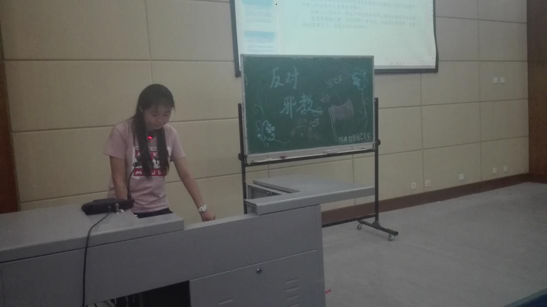 本次活动分为三个环节。专题讲解环节,由特殊教育学院学生对“邪教”的相关知识进行讲解,旨在增强学生们对邪教的认识;学生自由提问环节,参加讲座的同学就自己的问题进行提问,并有主讲同学进行解答;畅所欲言环节,参加讲座的同学上台发表自己感想。