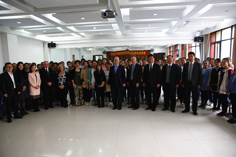 随后,六位专家步入A105报告厅为外国语学院学生做报告。首先由马院长发表讲话,表示了对六位远道而来的专家们的欢迎。随后六个美国专家逐一讲话,发表了关于对学校、对中国的看法。一直以来,中国文化都是以渊源流长、博大精深著称,希望和中国保持友好互助的关系。此次外国代表团来我校参观考察旨在积极探索与郑州师范学院的交流合作模式。在交流过程中,双方对各自的办学特点、办学模式等进行了详细介绍,对交流合作模式进行了深度探讨,并肯定了我校的教育教学,希望今后能够有机会与我校进行长期的中外交流合作办学。会见中双方期待着今后的合作共赢。
