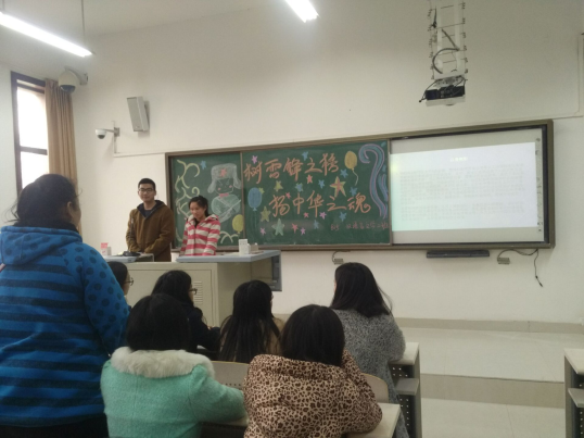 2016年3月8日,文学院展了以“树雷锋之榜 扬中华之魂”为主题的政治学习。