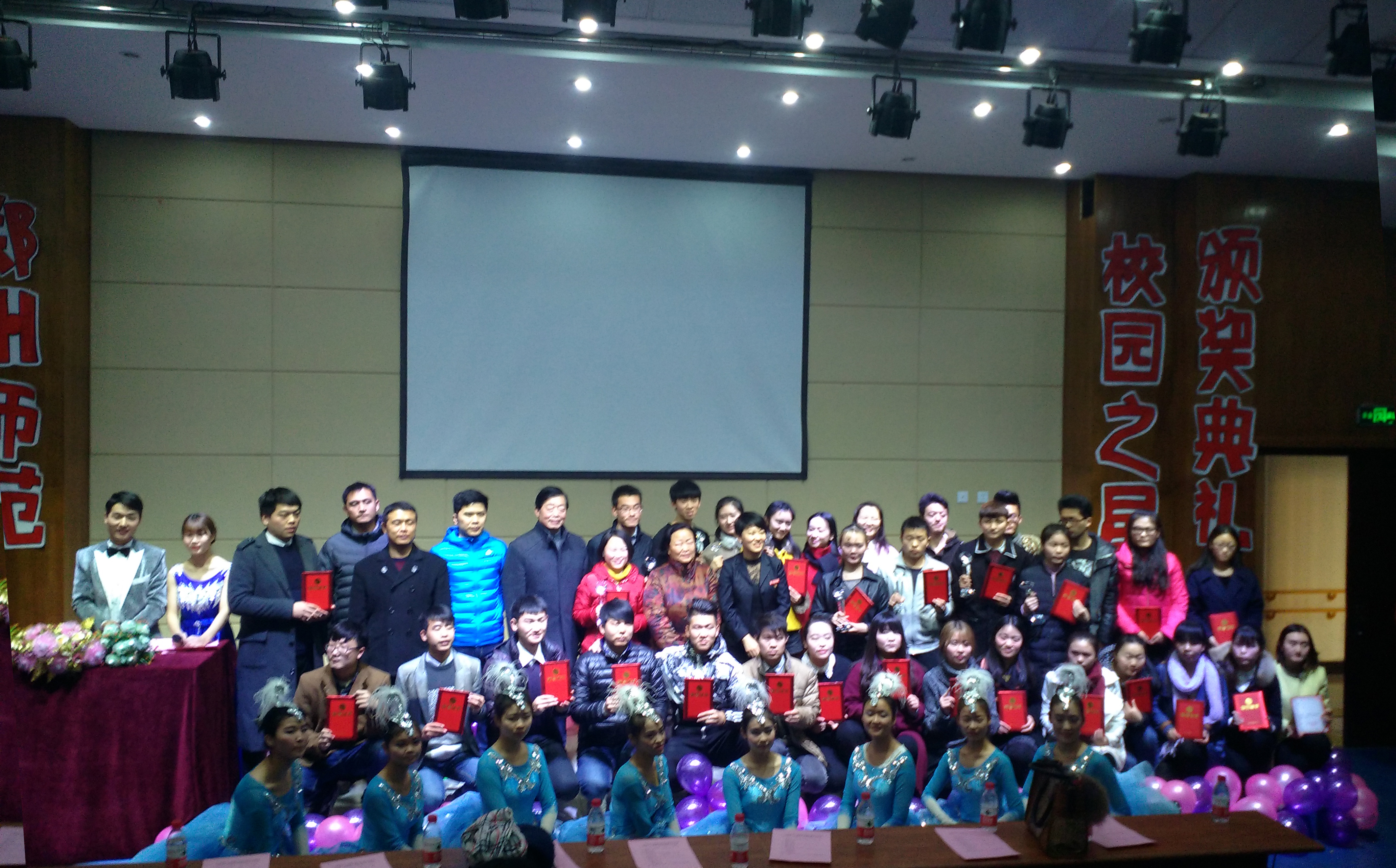 12月18日下午,在西校区特教楼举办了“点亮未来之星,共创人文校园——三传四讲道德实践活动暨郑州师范学院第二届校园之星颁奖典礼”。校党委于向英书记、美术学院负责人、校团委老师及各院系团总支书记均出席了本次活动。