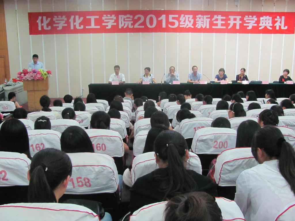 9月23日下午6点30分,郑州师范学院化学化工学院2015级新生开学典礼在郑州师范学院西校区一号学术报告厅隆重举行。化学化工学院党总支副书记王延珠,院长秦会安,副院长陈凌霞,团总支副书记李运涛出席会议,坐在主席台的还有化学化工学院各部负责人张建州老师,赵东旺老师,毛海荣老师,黄宇芳老师,穆兵老师。典礼由团总支副书记李运涛主持,化学化工学院各年级辅导员老师与15级全体新生参加此次典礼。