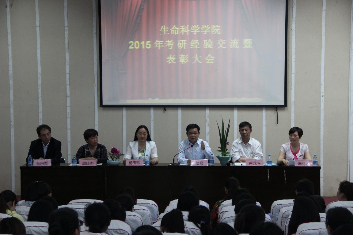 5月12日下午,生命科学学院2015年考研经验交流暨表彰大会在西校区1号楼报告厅顺利召开。校长赵健、生命科学学院特聘课程教授卢龙斗教授及生命科学学院师生参加了会议。