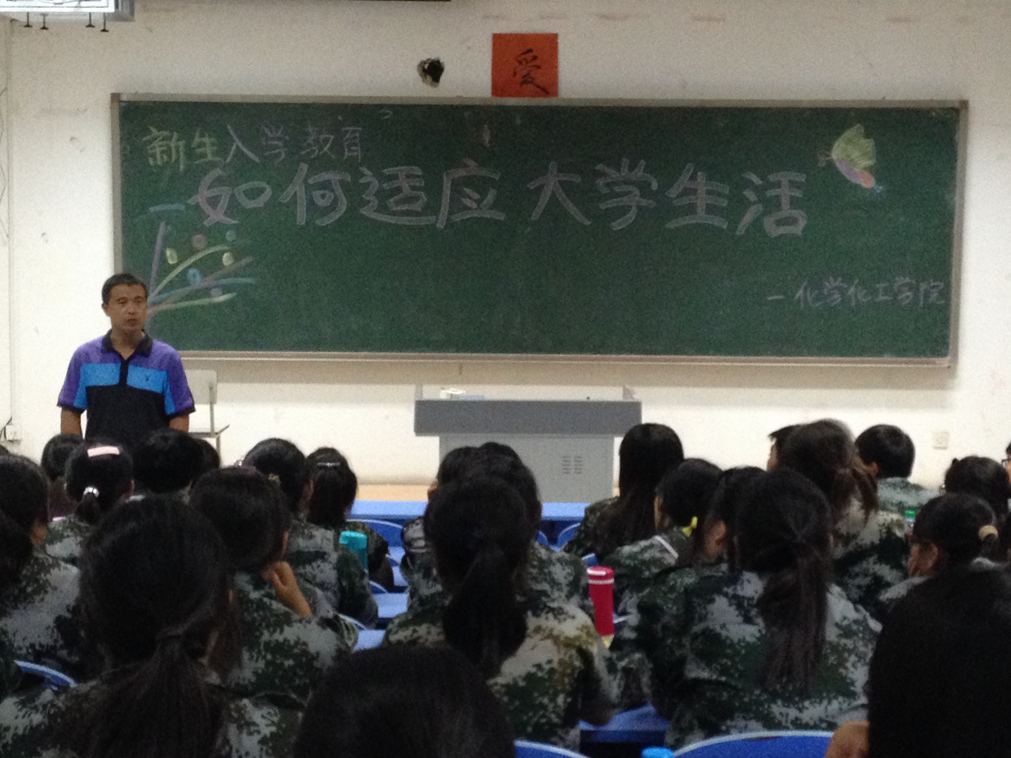 为了让大一新生更好地了解大学生活,帮助同学们认识自我和树立信心,化学化工学院于2014年9月4日晚上在郑州师范学院西校区四阶二教室组织进行了对2014级大一新生的入学教育。化学化工学院团总支副书记李运涛老师出席了本次讲座。