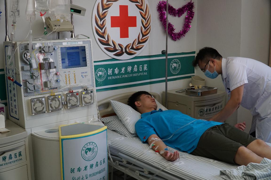 7月11日上午,在学校师生、红十字会工作人员和志愿者的陪伴下,郑州师范学院的大三学生孙宾在河南省肿瘤医院造血干细胞采集中心捐献造血干细胞,并度过了一个极具纪念意义的生日,成为郑州市第214位造血干细胞志愿捐献者。