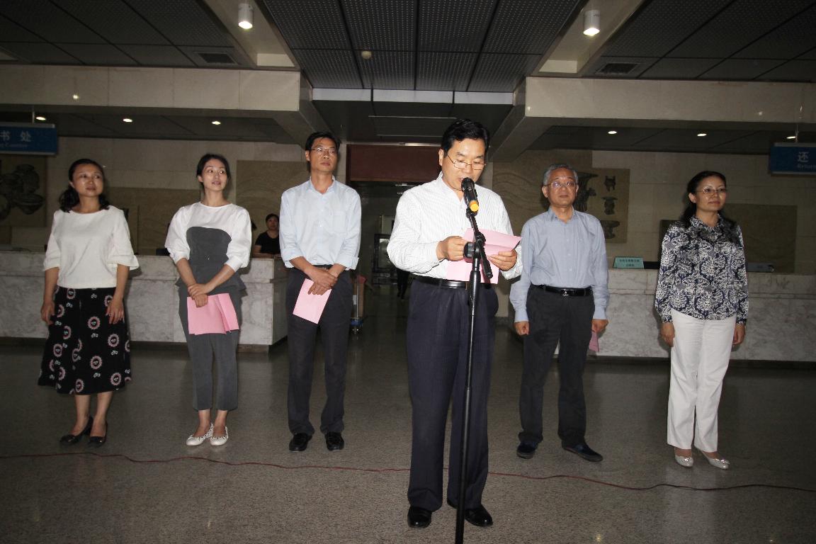 6月7日下午,2016年读书月活动总结暨颁奖仪式在图书馆二楼大厅举行,副校长贾敏仁,校党委宣传部、学生处、校团委、图书馆负责人出席仪式,参加仪式的还有学生代表和获奖代表等。仪式由图书馆党总支书记王志军主持。