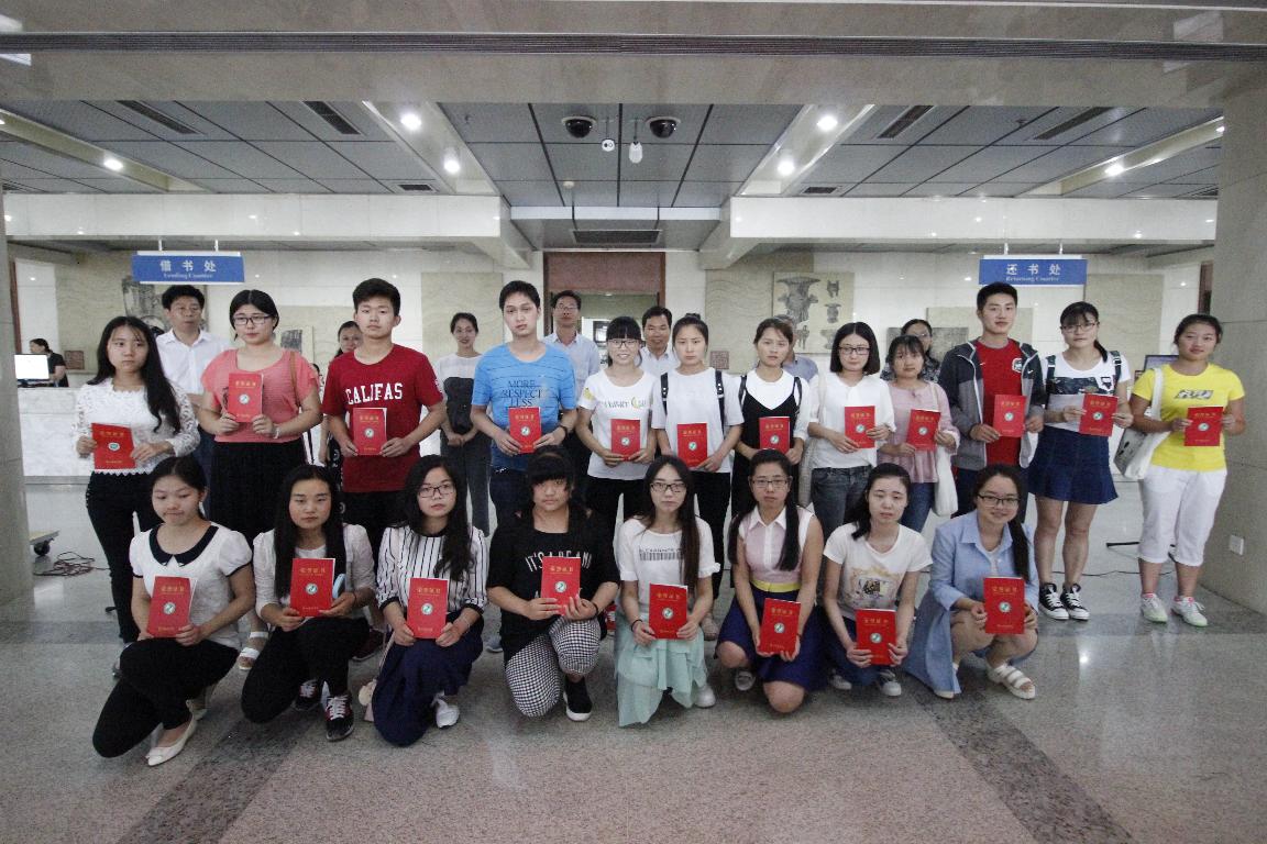 接下来是领导嘉宾宣读获奖名单,校党委宣传部部长惠保德宣读文明馆员和服务标兵名单,学生处处长杨朝红宣读优秀学生馆员名单,校团委书记王珊宣读读书标兵名单;学生赵豫、谭晓分别代表优秀学生馆员和读书标兵发言。