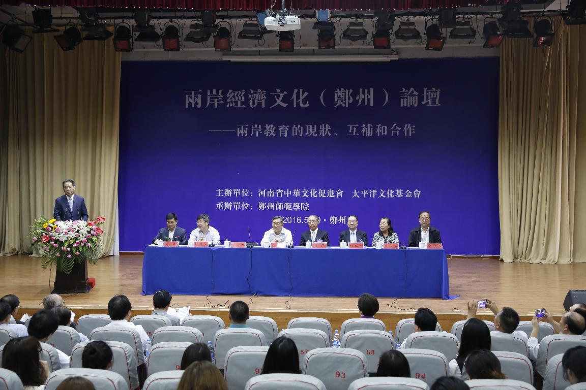 五月暮春初夏的郑州,鲜花簇拥,绿满商都。19日下午,来自海峡两岸的专家学者、企业家及我校师生600余人汇聚一堂,在我校七号楼报告厅隆重举行第三届“两岸经济文化(郑州)论坛——两岸教育的现状、互补和交流”研讨活动,本届论坛由台湾太平洋文化基金会、河南省中华文化促进会主办,郑州师范学院承办。