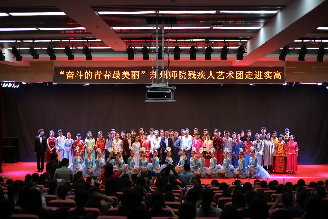 5月14日上午,郑州市实验高级中学礼堂座无虚席,由我校残疾人艺术团以及该校话剧社的同学们共同参与的“奋斗的青春最美丽”主题活动在此上演。我校党委副书记翟幸福、宣传部长惠保德和郑州市实验高中领导孙海峰、李超、杨兴涛以及两校师生代表共同观看了演出。