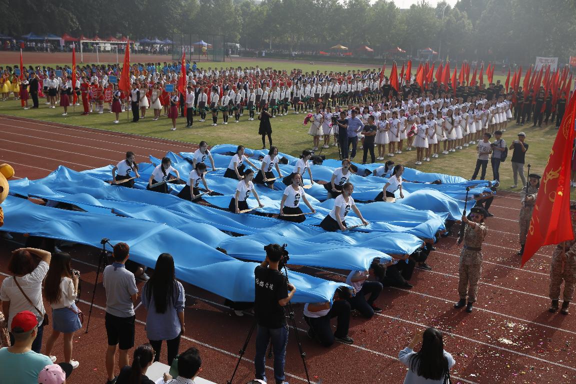 接下来,校长赵健宣布我校“华光”体育活动暨第六届田径运动会正式开幕。裁判员和运动员代表分别宣誓后,副校长张建航宣布大会纪律。最后,激情四射的健美操表演赢得了师生们阵阵掌声。