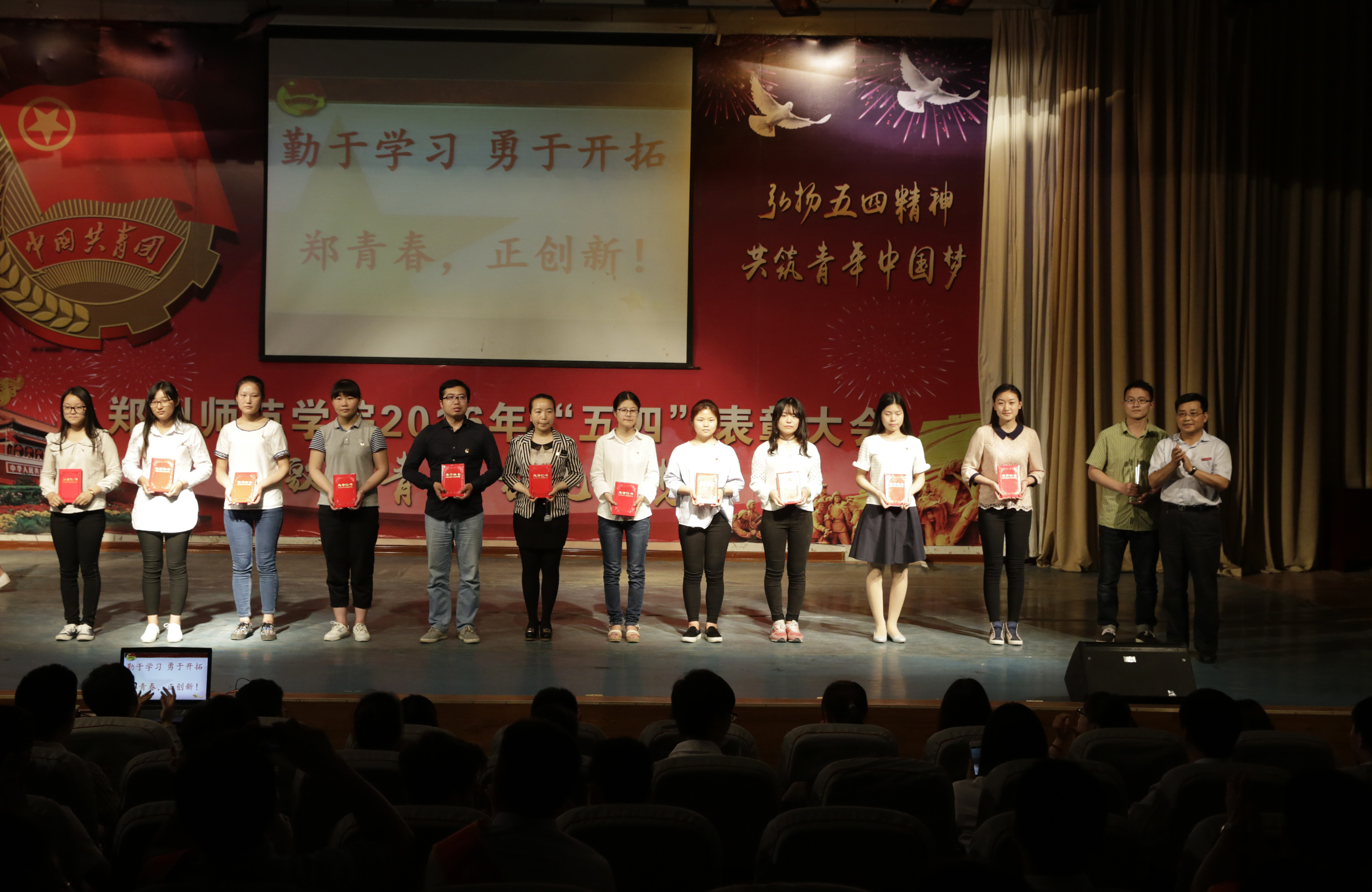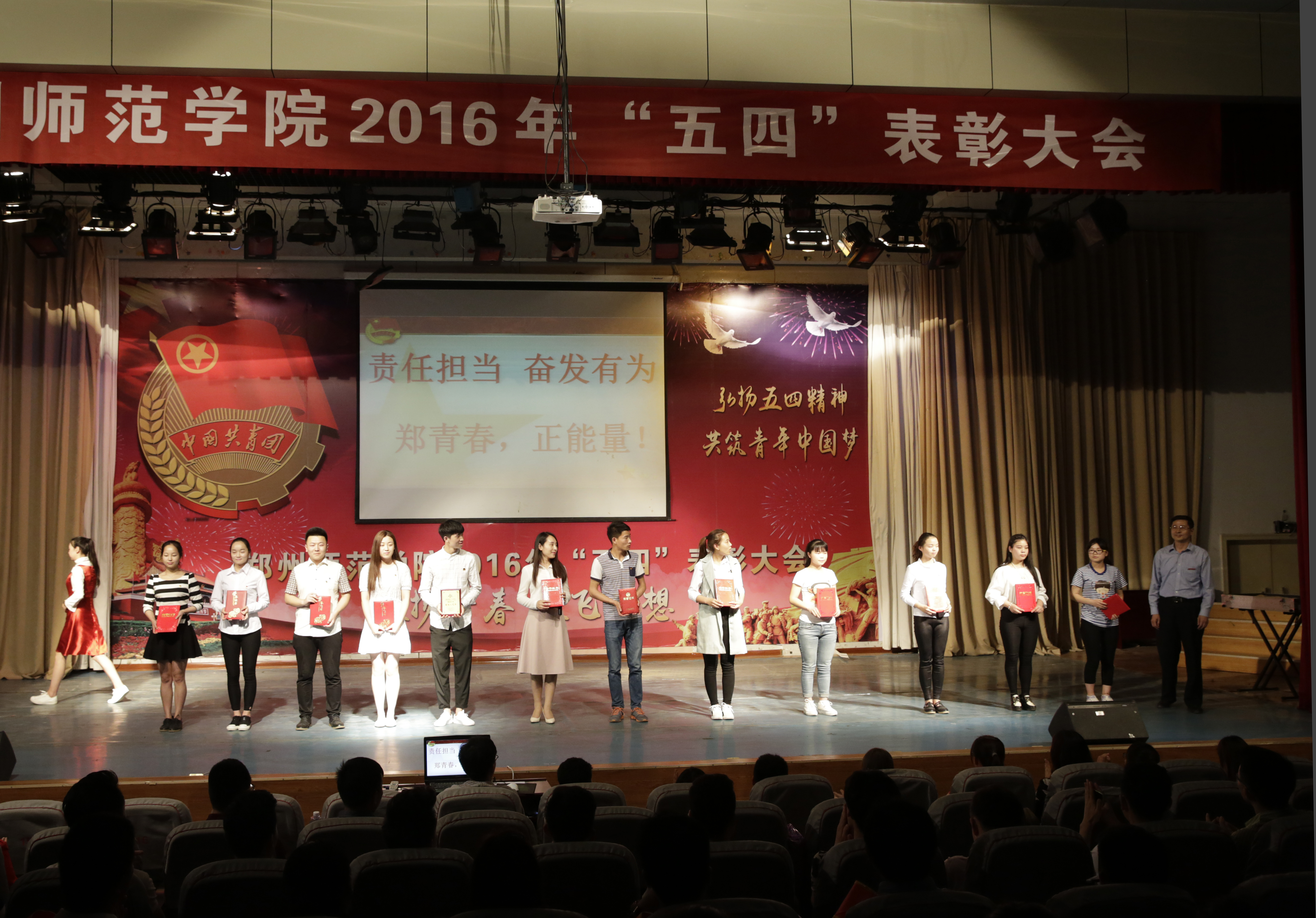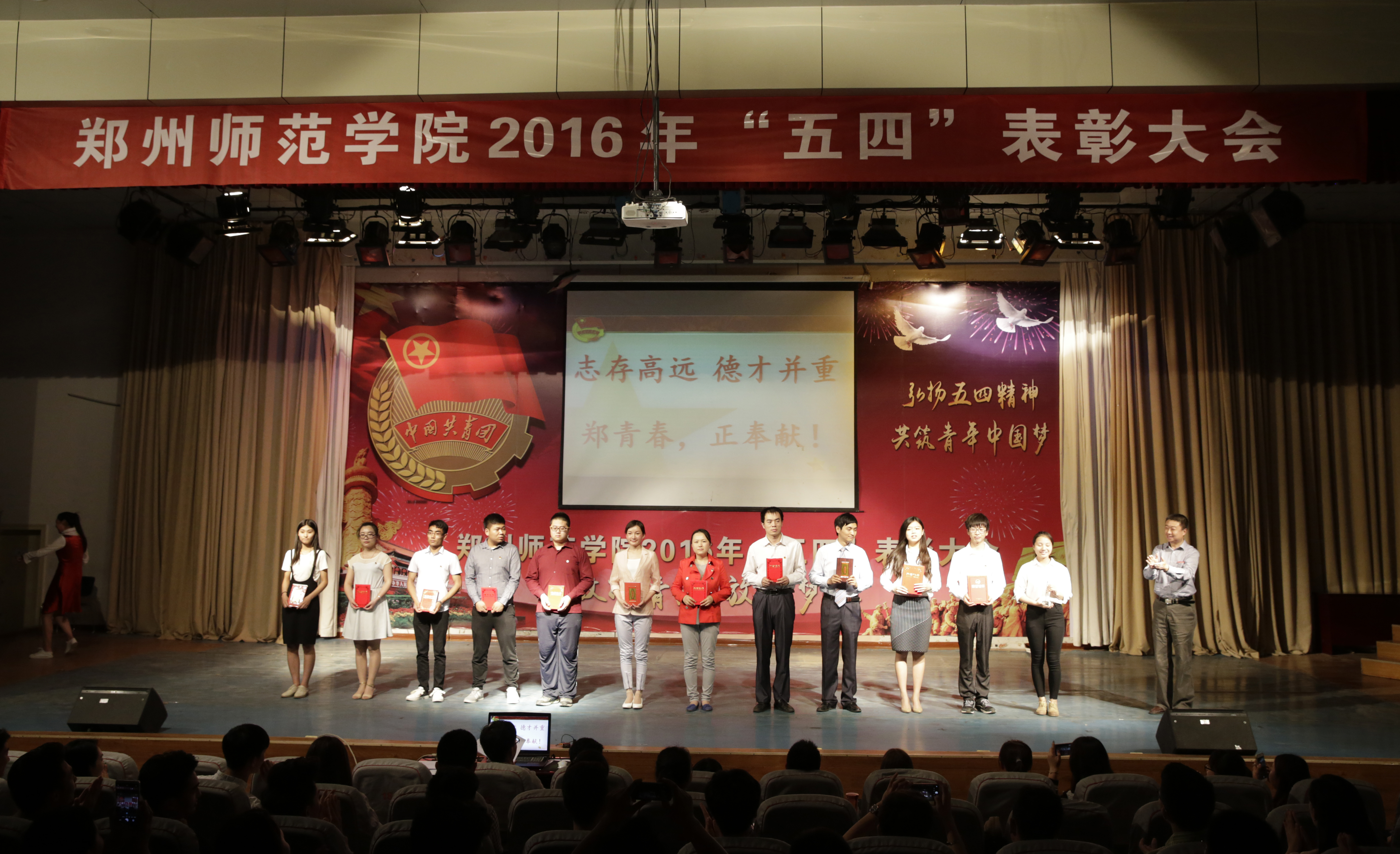 5月4日下午,郑州师范学院“五四”表彰大会在西校区七号楼报告厅举行。校长赵健,党委副书记、工会主席弓民,副校长孔青,纪委书记李树生出席会议。参加此次会议的人员还有各团总支书记、团员学生代表、获奖代表。