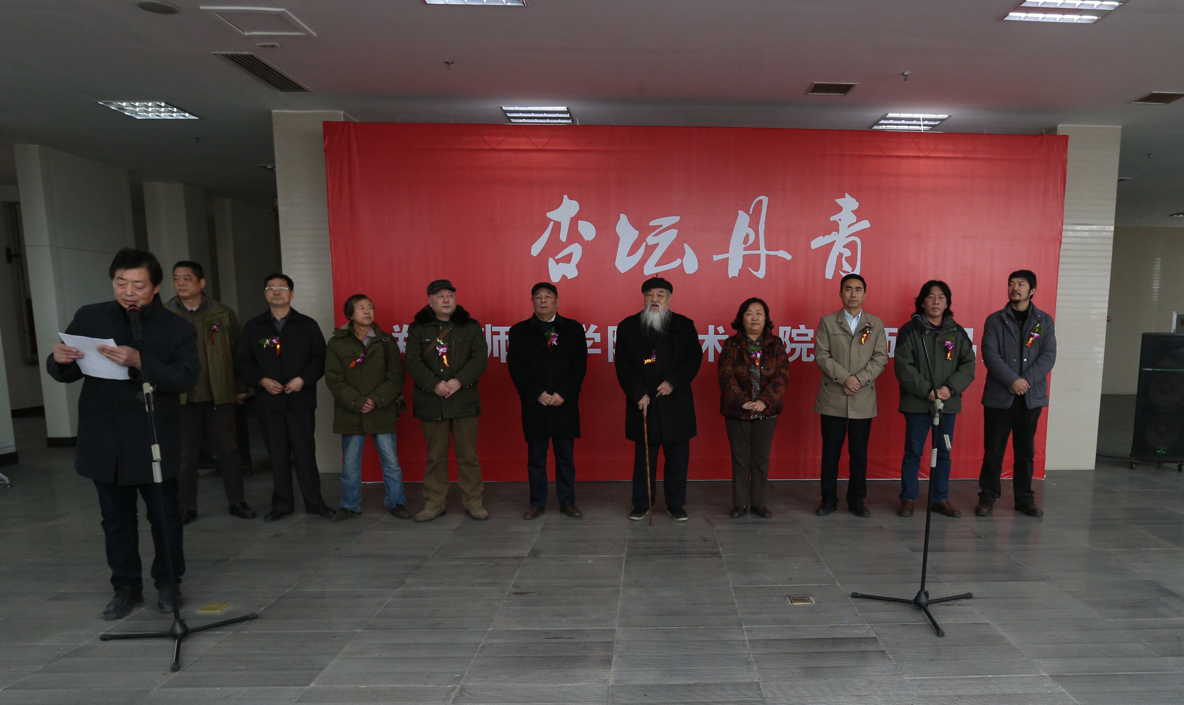 河南省美术家协会名誉主席王威教授,华北水利水电大学党委副书记石品教授,首都师范大学博士生导师舒春光教授,中原书画院院长张本平先生,河南省美术馆副馆长于会见教授,我校党委书记于向英教授,纪委书记李树生,以及省内艺术界部分知名专家出席开幕式,开幕式由美术学院院长王西军主持。