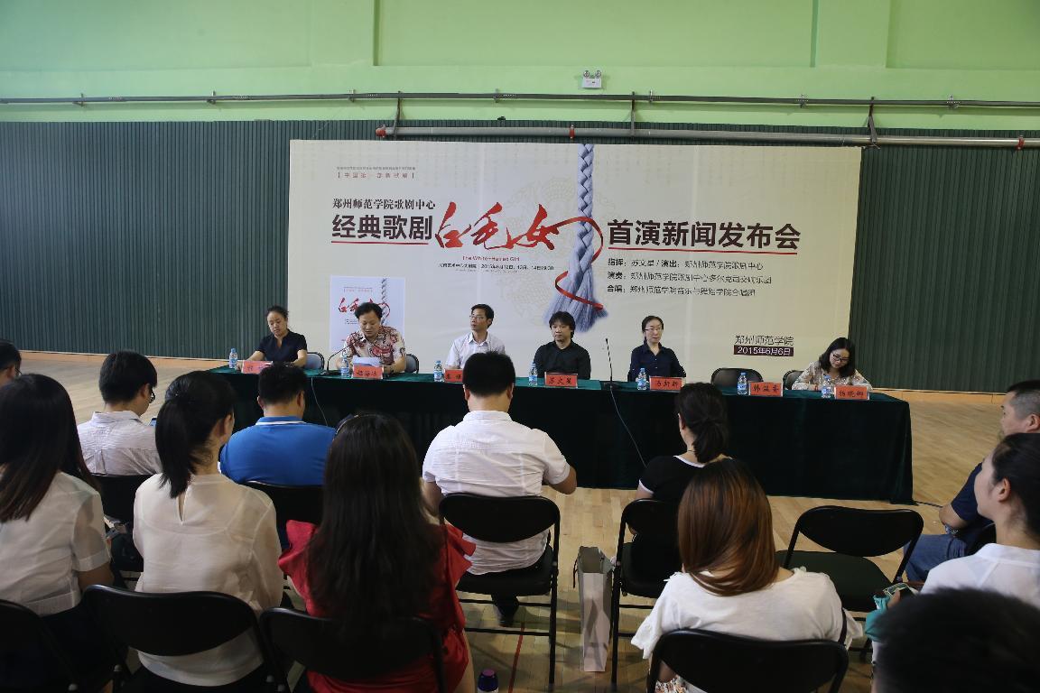 6月6日下午,在我校东校区综合训练馆3楼排练厅,召开了郑州师范学院歌剧中心经典歌剧《白毛女》首演新闻发布会,将演出信息通过众多媒体向社会各界传递,吸引广大市民和音乐爱好者关注,为歌剧《白毛女》成功上演营造良好的舆论氛围。歌剧《白毛女》主创人员出席发布会。