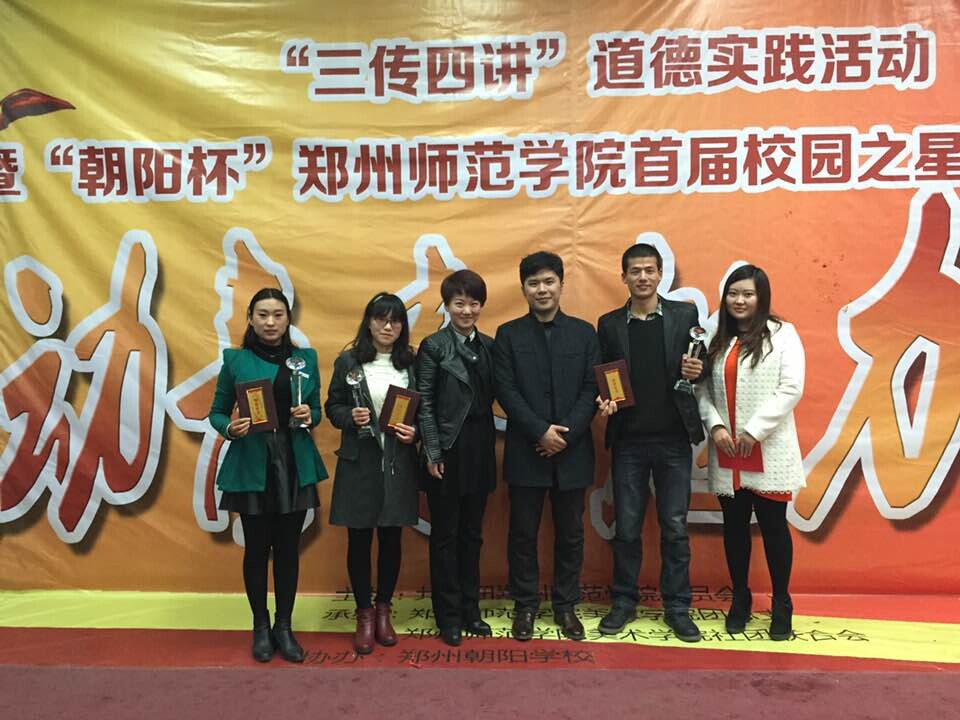 为了表彰先进个人,树立当代大学生的形象与榜样,11月19日下午,由校共青团委员会主办,美术学院团总支、美术学院社团联合会承办的“三传四讲”道德实践活动暨“朝阳杯”郑州师范学院首届校园之星颁奖典礼在西校区一号楼报告厅举行。校团委、校社团、美术学院、文明办以及各学院团总支负责人、各学院学生代表二百余人参加了此次颁奖典礼。 一支活力动感的开场舞为典礼拉开了帷幕。本届校园之星的评选经过了老师和同学们的共同投票,共揭晓了十名校园之星和一个优秀团队,由各院团总支书记为获奖同学颁发了奖杯和证书。接着也公布了本届校园之星的提名奖,并对他们表示鼓励。最后典礼在一曲充满感动与温馨的《相亲相爱》中落下帷幕。 此次校园之星的颁奖典礼,启迪和激励了每一位学生,展现了我校优秀大学生的魅力风采,同时也营造了更加积极向上和催人奋进的校园氛围。 |