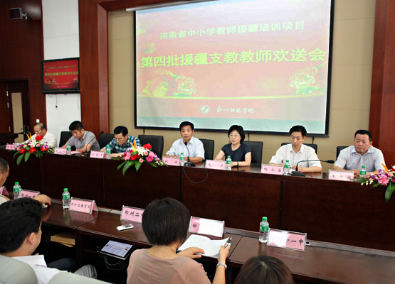 8月29日下午,“河南省中小学援疆培训项目”郑州市第四批援疆教师赴新疆哈密地区支教欢送大会在我校举行,省教育厅师范教育处副处长杨永盛,郑州市教育局党委书记、局长毛杰、副局长曾昭传,新疆哈密地区教育局副局长刘林亚,我校校长赵健、副校长赵玉岭出席欢送会。
