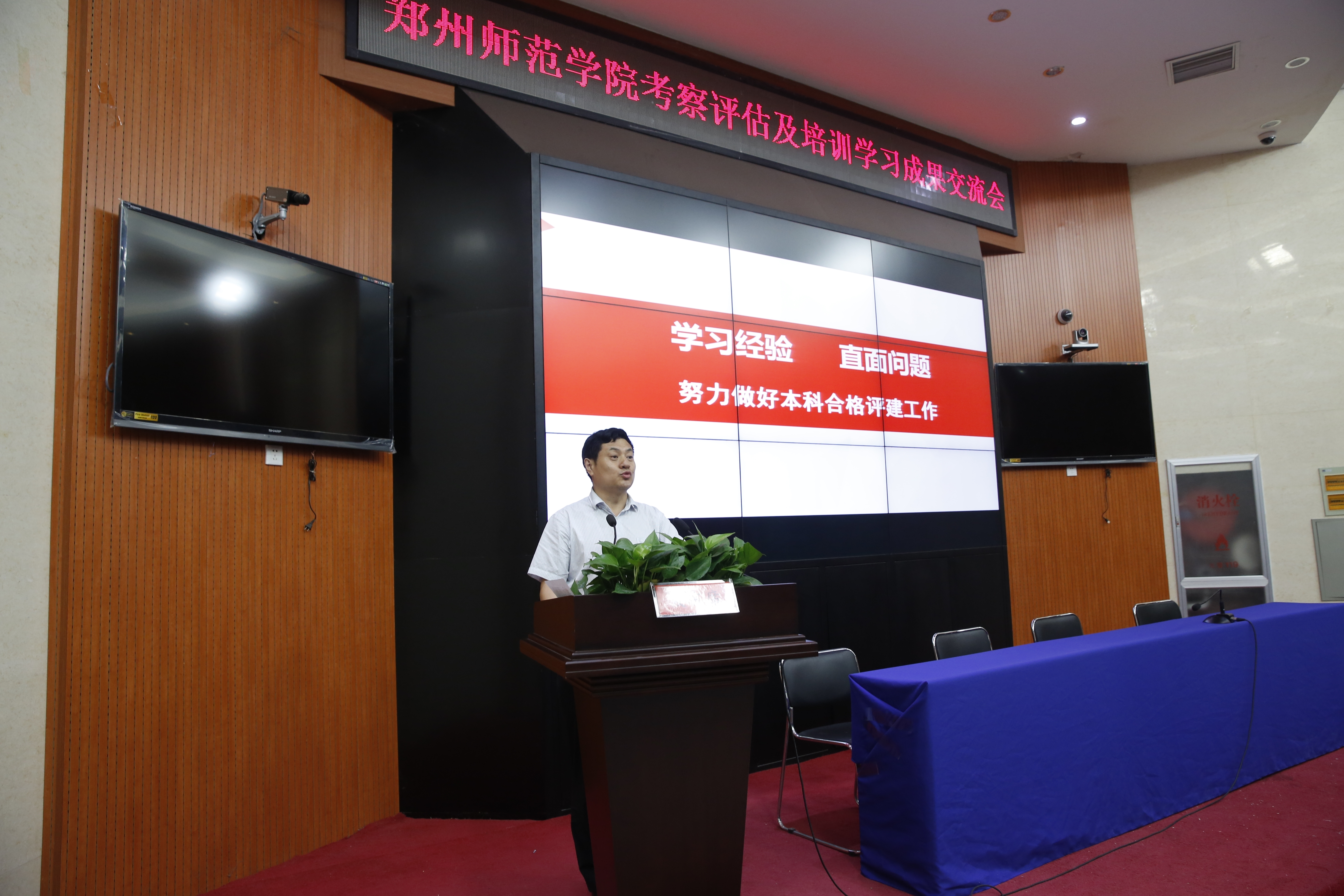 党委书记赵健就做好下一步迎评准备工作提出要求,一是要提高思想认识,凝聚全员力量。每一位师生员工都要用“我是郑师人”来提醒自己,进一步增强认识,强化观念,切实提高对评估的关心度和关注度。各级领导干部要真正沉下心,切实弄清楚评估标准、任务分工、评估安排;要加大力度,组织广大师生认真学习、领会、贯彻学校评建工作的决策、措施和方案,要挖掘典型,充分发挥榜样的示范作用,形成良好的舆论氛围,引导全体师生树立“校兴我荣,校衰我耻”的意识。二是要树立全局意识,加强通力协作。评建工作不仅是对学校本科教学工作水平的评估,更是对学校整体工作水平的全面检验。各部门、各单位要在学校党委的统一领导下,牢固树立全校一盘棋的思想,自觉站到学校大局考虑问题、接受任务。各单位党政一把手要认真当好评建工作第一责任人,切实担负起领导责任,自觉服从大局,服从学校统一安排,对安排的任务,要不打一点折扣认认真真完成,要调动所有人员积极性性,发挥团队作战作用,相互支持配合,努力把评建的各项工作任务做实、做精、做细。三是要明确目标责任,严格检查督导。评建工作的过程,本身就是对每位干部、教师事业心、责任感和工作态度的一次检验,更是对每个人的政治素质和工作实绩的考验。评建工作将实行严格的考评奖惩制度,对迎评工作中造成不良影响和严重后果的,要坚决追究当事人和相关领导的责任;对工作责任心不强,在评估中丢分、拉后腿、有损学校形象的,要及时进行诫勉谈话,并与个人职称评聘、职务晋升挂钩。四是要强化建设思想,推动内涵发展。要真正理解“以评促建、以评促改、以评促管、评建结合、重在建设”的意义,认识到迎接教学评估绝对不是一种负担,而是一种机遇。要通过此次评建工作,进一步解放思想,更新观念,真正把迎评的过程变成我们加强内涵建设,有效提高学校整体教学水平的过程。