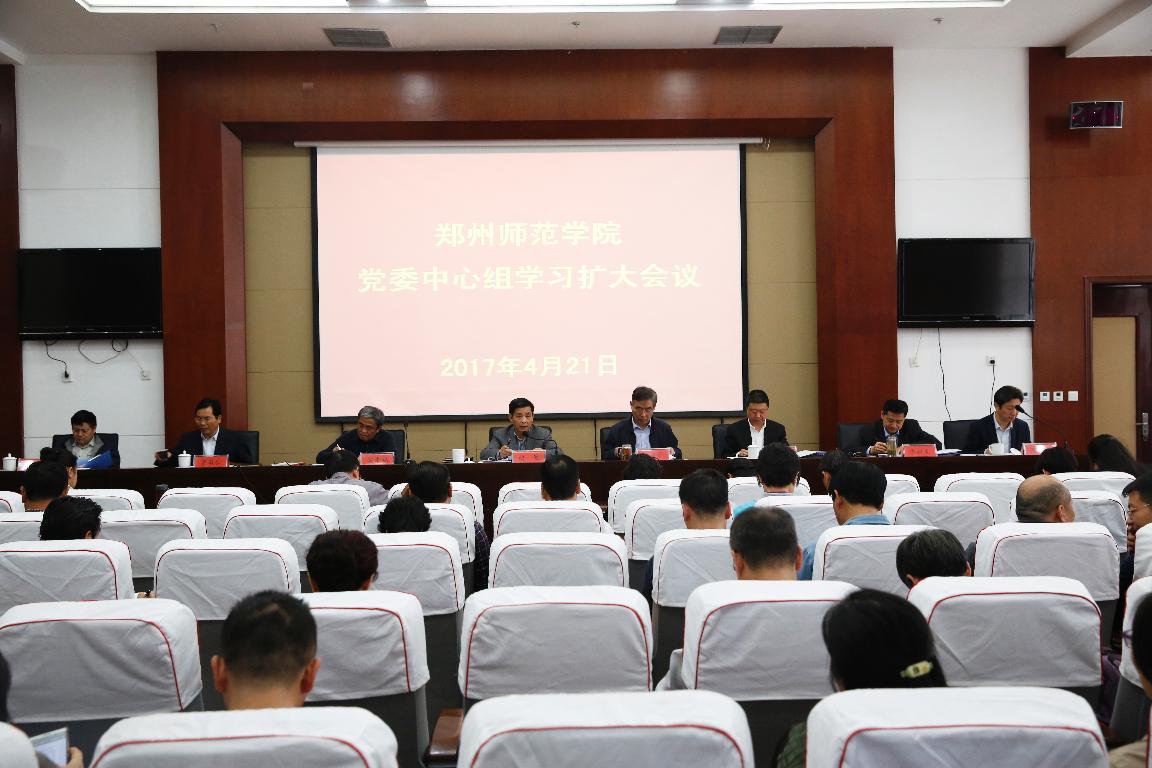 4月21日下午,校党委在图书馆十楼报告厅召开党委中心组学习(扩大)会议,校领导赵健、孙先科、翟幸福、孔青、贾敏仁、李树生、刘济良、陈新及全校副处级以上干部参加会议。